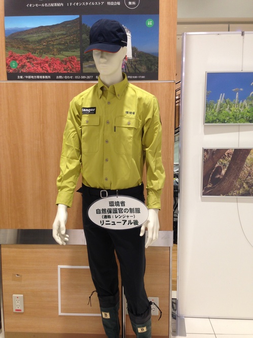 また、環境省の自然保護官(レンジャー)のことを初めて知る方のために、今回特別にマネキンもお借りして、レンジャー服も展示させて頂きました♪