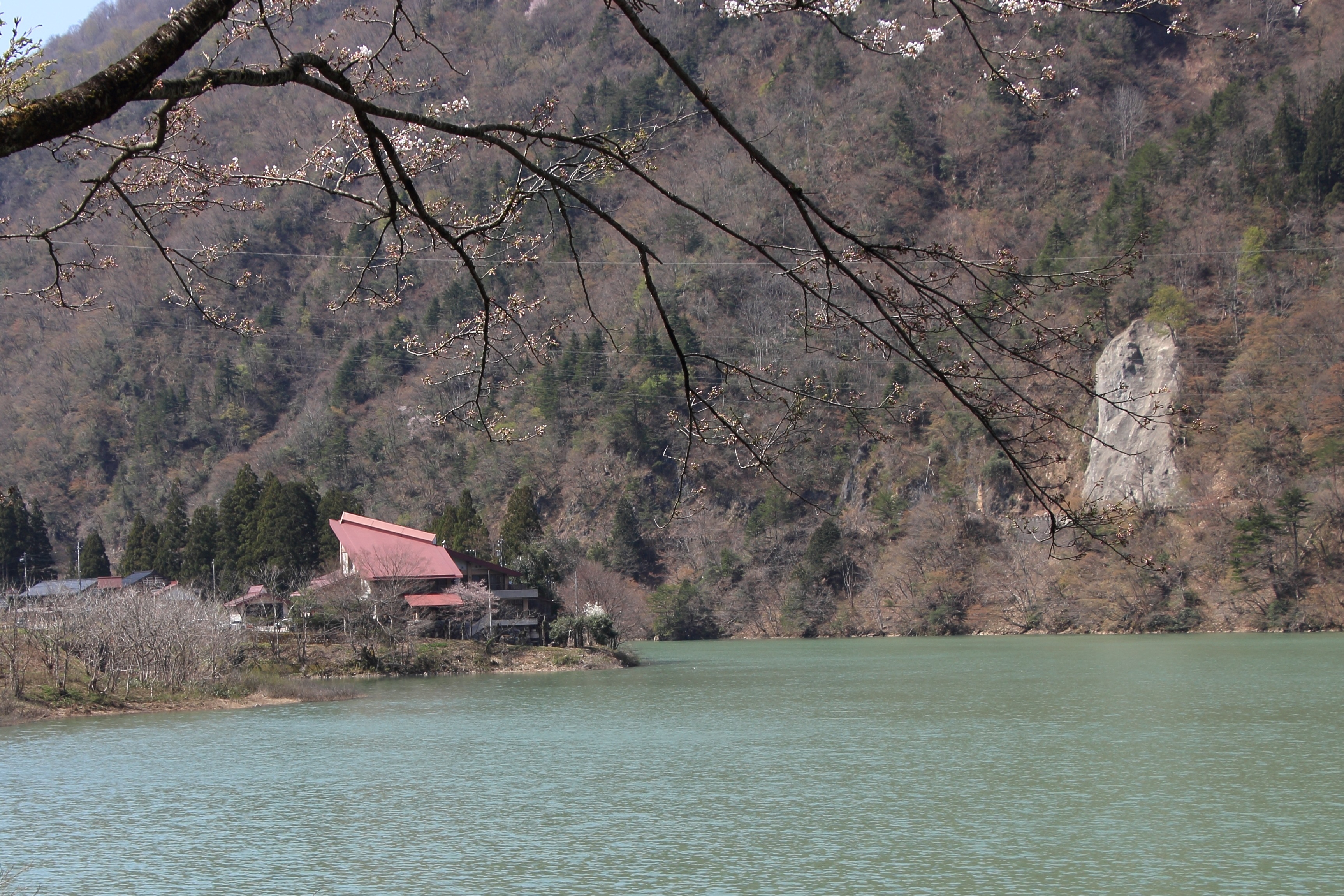 (会場のくろば温泉は湖畔にあります。4月12日撮影)