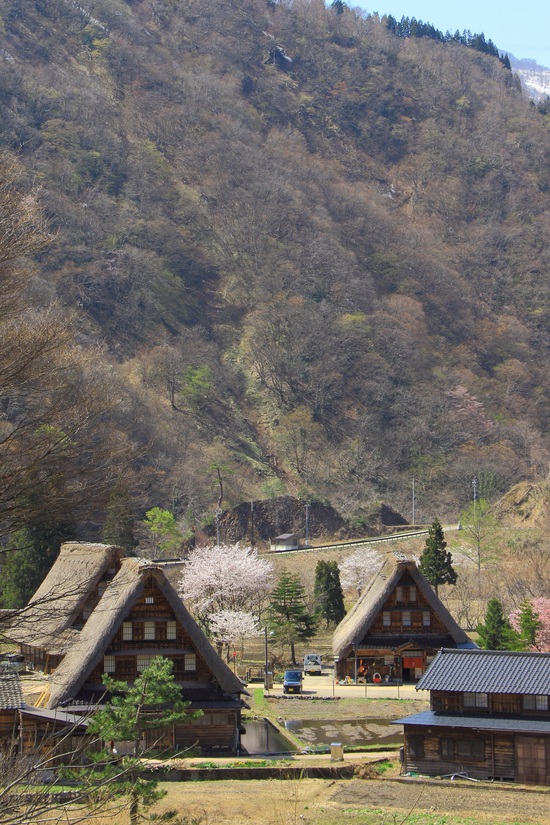 (写真展会場の下見に行った4月12日の菅沼集落。桜が咲いていました。) そして今は新緑の季節。 上の写真を撮影したときよりも更に木々が美しくなっています。輝く新緑の中に合掌造りの建物がある風景はとても美しいですよ。 この時季は、山菜を提供するお店もあり、山の恵みをいただくことができます。 他にも栃もち(トチノキの実を使ったお餅)や堅豆腐(かたとうふ)という大豆の旨みがギュギュっとつまったお豆腐、イワナやジビエ料理など、この土地ならではのおいしいものがたくさんあります。 「こきりこ」という伝統的な民謡も歌い継がれており、白山の懐にある五箇山では、自然、食、文化、建築といろんなものを楽しめます。 ゴールデンウィークはぜひ五箇山に遊びに来てください。レンジャー写真展と五箇山の魅力が皆さまをお待ちしております♪