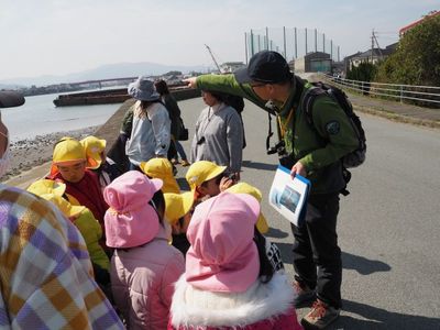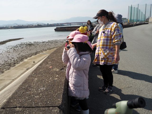 今回は、幼稚園近くの神社港で野鳥の観察をしました。