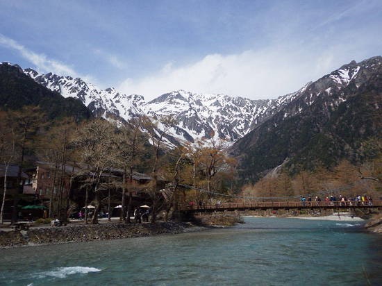 【アルプホルンの演奏と賑わう河童橋のたもと】