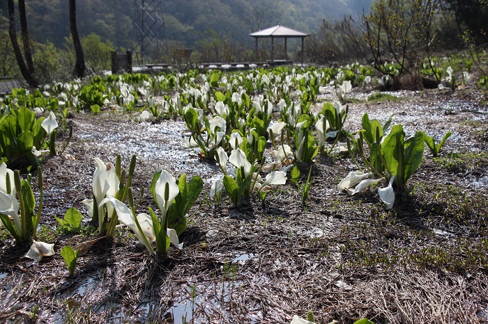 こんにちは。 ゴールデンウィーク後半の予定は、皆さん、お決まりでしょうか? お天気が期待できそうな5月5日(土)、6日(日)あたりに白山国立公園に遊びに来ませんか?山はまだまだ雪の中ですが、標高の低いエリアは新緑の美しい季節です♪ ■ おすすめスポット その1<市ノ瀬地区> 鈴木ARが5月1日(火)のAR日記で紹介していますが、石川県白山市白峰の市ノ瀬地区にある「市ノ瀬ビジターセンター」が今シーズンの開館を再開しています。 今、市ノ瀬地区で私のオススメは、ミズバショウが見頃の「根倉谷(ねぐらだに)園地」です!  (根倉谷園地のミズバショウ。5月1日撮影) この場所は市ノ瀬ビジターセンターから車で5分ほどくだったところにあります。新緑を背景に広がるミズバショウの群落を見に来ませんか? 【 市ノ瀬ビジターセンター 】 入館料:無料 開館日:5月上旬頃~11月上旬(積雪等によってかわります。) 開館時間:午前8時45分~午後5時 〒920-2501 石川県白山市白峰ノ 35-1(市ノ瀬) TEL. 076-259-2504 FAX. 076-259-2531 ■ おすすめスポット その2<中宮地区> 石川県白山市の中宮地区にある「中宮温泉ビジターセンター・中宮展示館」も4月28日(土)から今シーズンの開館を再開しています♪  (中宮温泉ビジターセンター・中宮展示館) ビジターセンターの建物裏に入り口がある「蛇谷(じゃだに)園地」では、毎年、カタクリの大群落が見られます。しかし、この冬は大雪だったのに雪解けが猛烈な勢いで進んでいる影響で、カタクリの見頃が例年より早く進んでしまっているそうです。 でも、まだ群落が残っています!