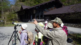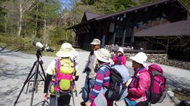 はじめ、すっかりグループに紛れ込んでいて気付きませんでしたが、「上高地パークボランティア」さんが解説をしておりました!!