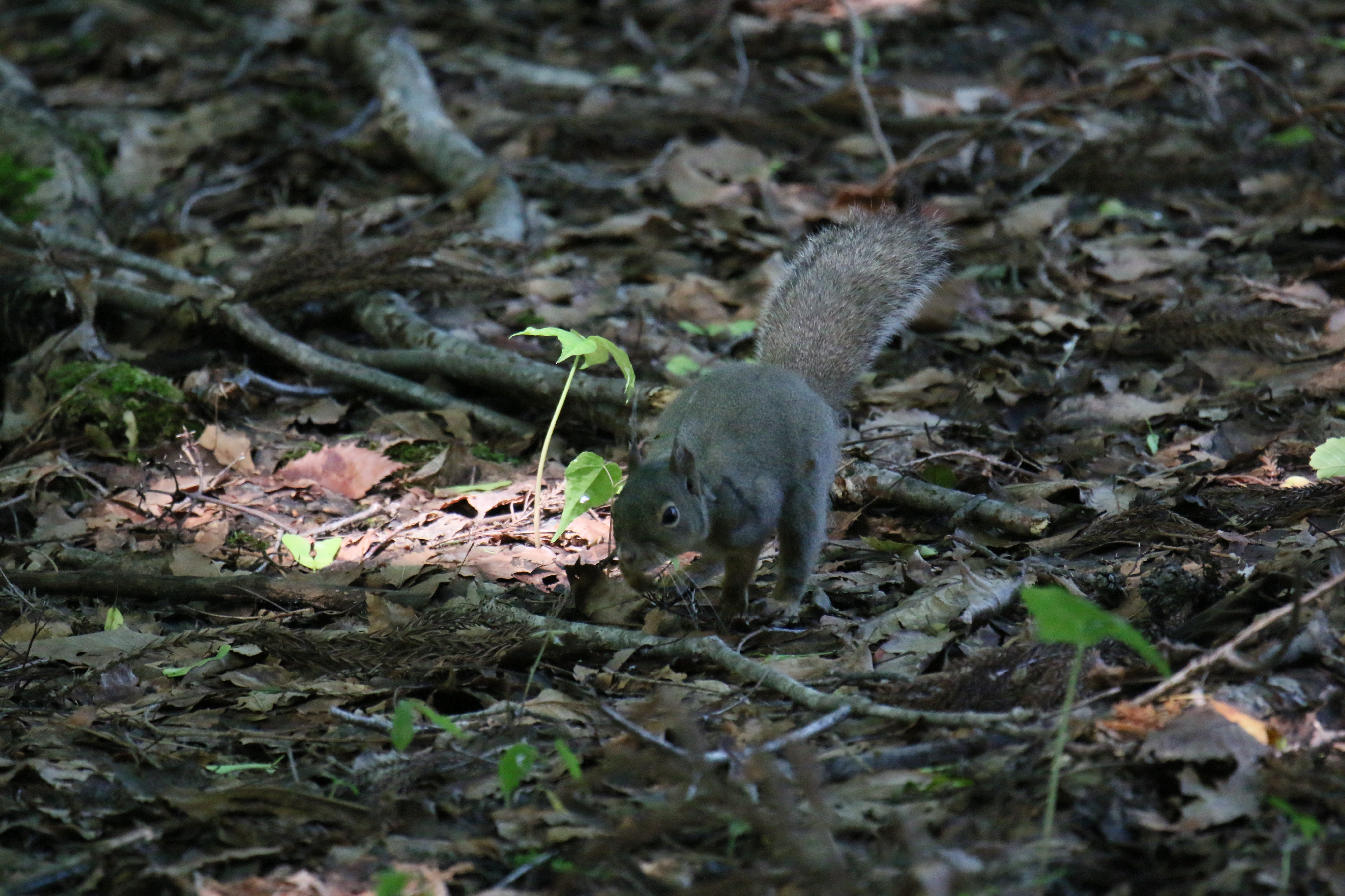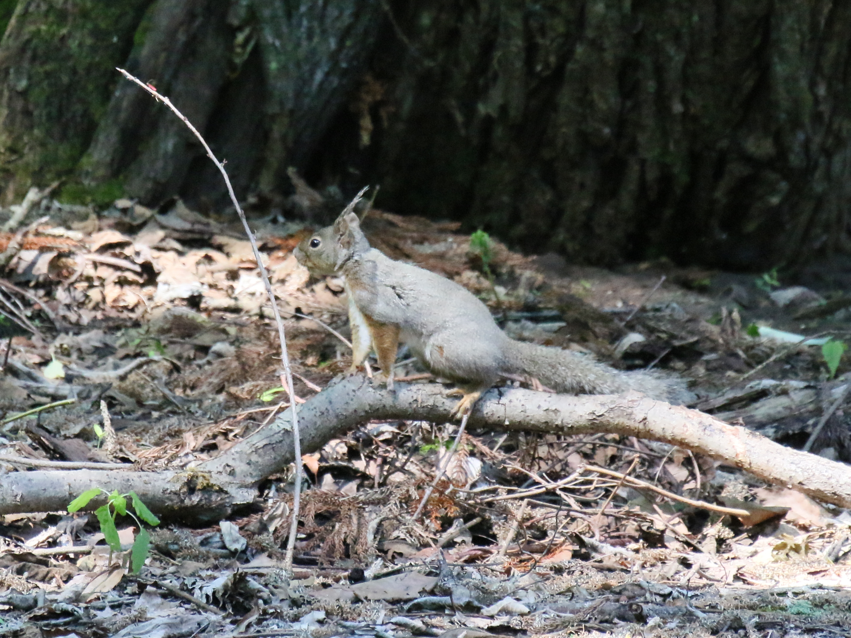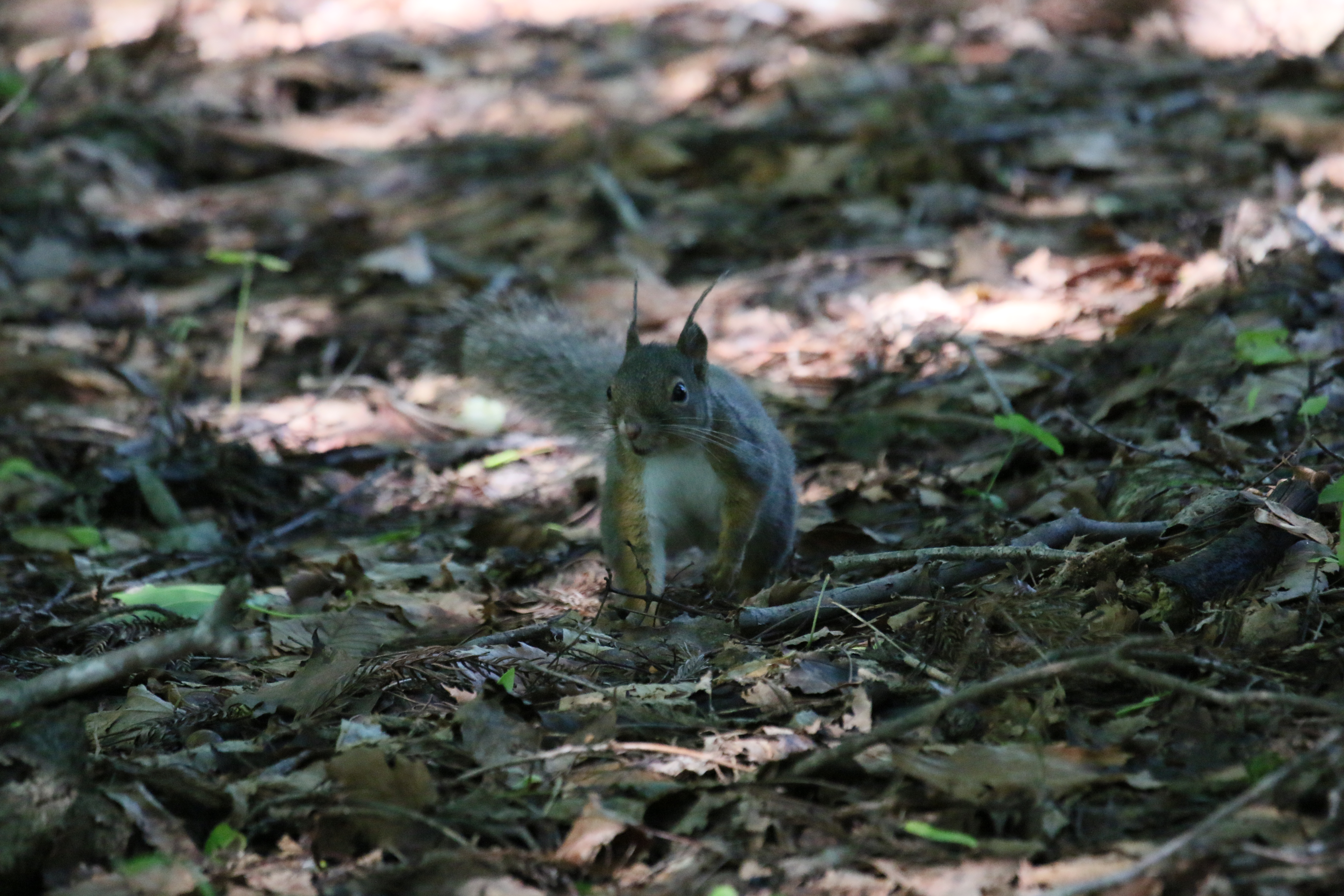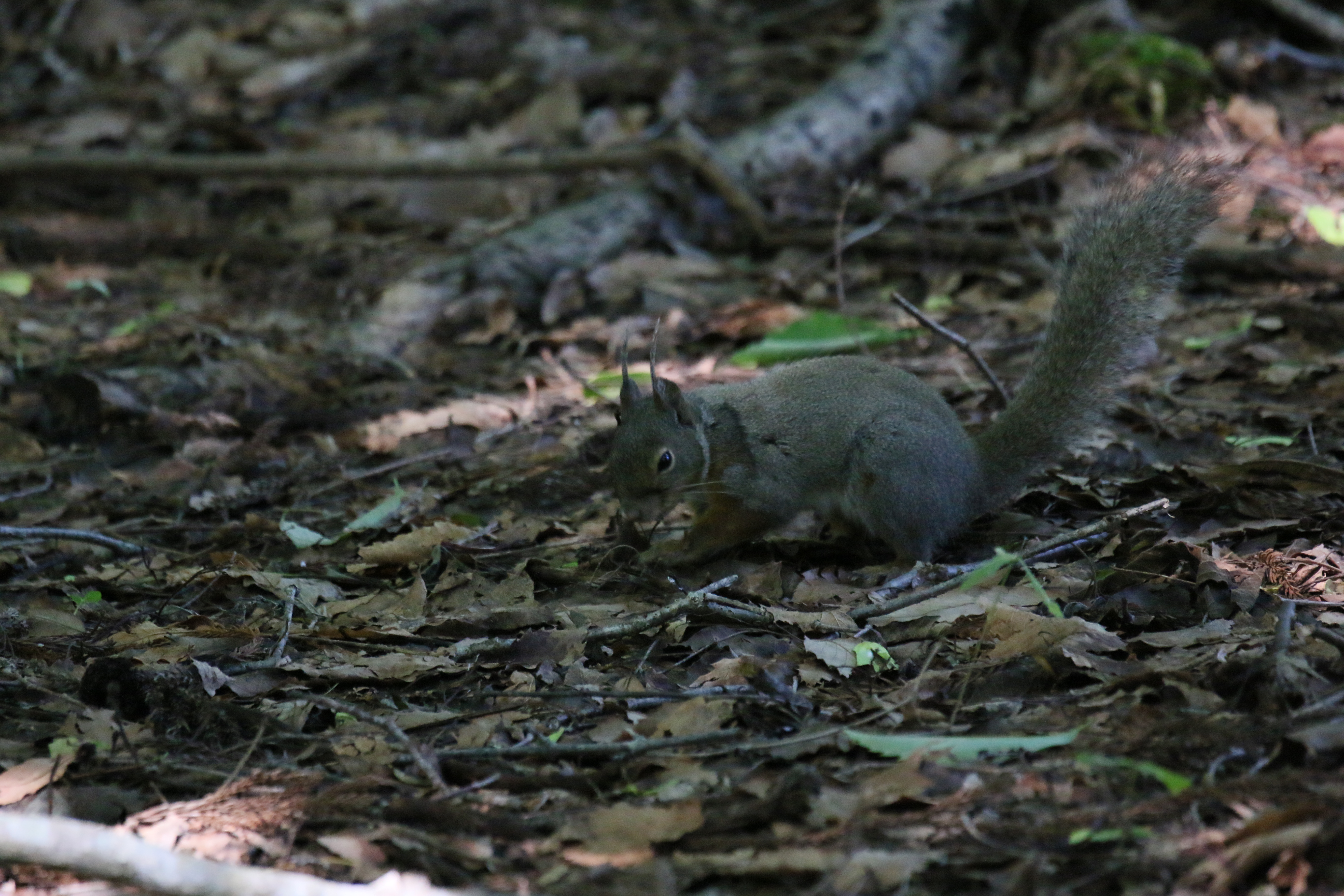 この日も、落ち葉の上をすばしっこく飛び回るニホンリス(ホンドリス)に出会いました。