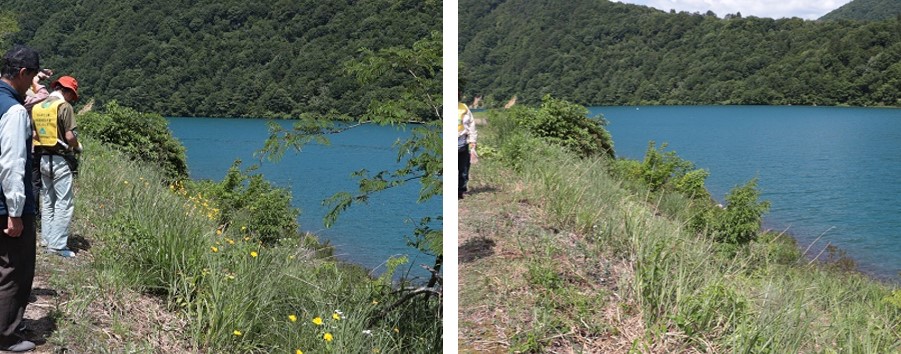皆さん、こんにちは。 6月17日に白山国立公園の桂湖(富山県南砺市)に行ってきました。  (桂湖) 青い水面、深い森の緑、湖上を吹き渡る爽やかな風!湖面にはカヌーやウィンドサーフィンを楽しむ人、湖畔ではオートキャンプを楽しむ家族連れ・・・桂湖は、自然の中でゆっくりと過ごすことのできる雰囲気の素敵な場所です♪ しかし! この写真にはのんびり見てはいられないものたちが写っています! それは・・・これです!↓↓↓