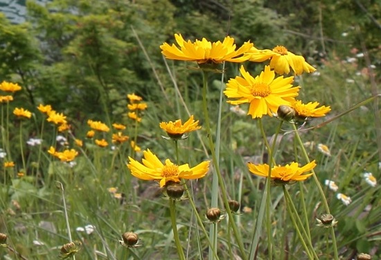 このかわいらしい花は、5~7月頃に花をつけるオオキンケイギクという植物で何を隠そう「外来植物」です。 北アメリカ原産の植物で、明治中期に鑑賞や緑化のために日本に持ち込まれました。かつては積極的に種が蒔かれた場所もあるくらい身近な存在になっていた植物ですが、今は「特定外来生物」というものに指定されているちょっと特別な存在です。