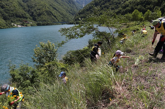 除去物は南砺市さんのご協力で運搬・焼却していただきました。  (除去され、運搬されるオオキンケイギク) 除去量は、平成28年は317kg、平成29年は276kg、今年は75.5kgと、嬉しいことにだんだん減っています。少しずつ、除去の効果が現れて生育量は減っているようです。このままの勢いで減り続けますように! 皆さんも、オオキンケイギクを見つけたら、駆除にご協力をお願いします。 ただ、駆除にはいくつか注意点があります! 駆除の方法や注意点について、詳しくは中部地方環境事務所の下記ページをご覧ください。 特定外来生物「オオキンケイギク」の駆除にご協力下さい!