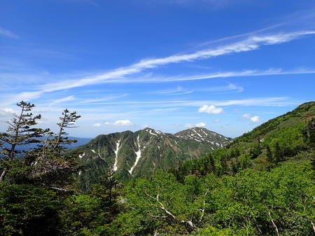 (避難小屋の裏から見える白山釈迦岳。)