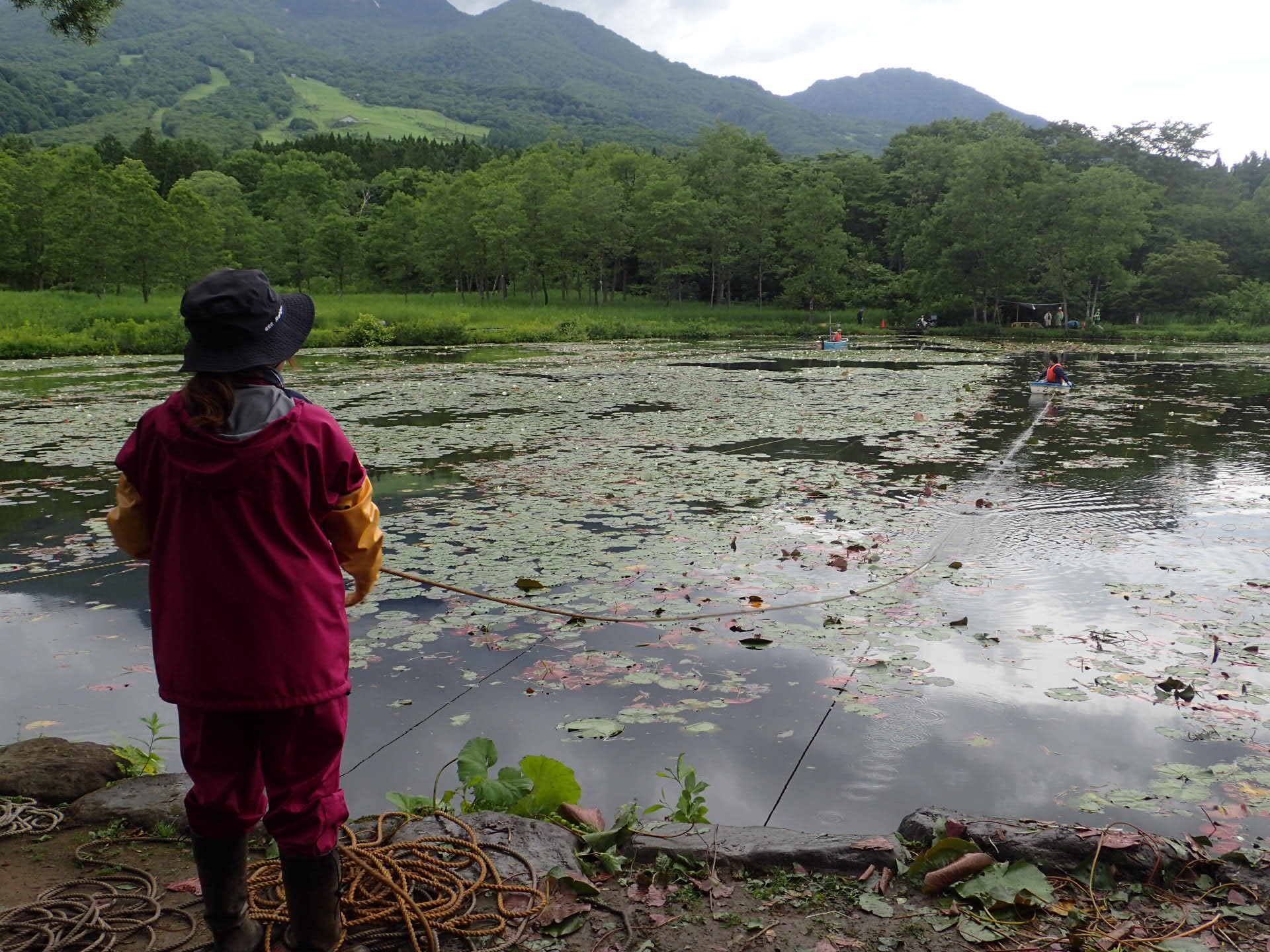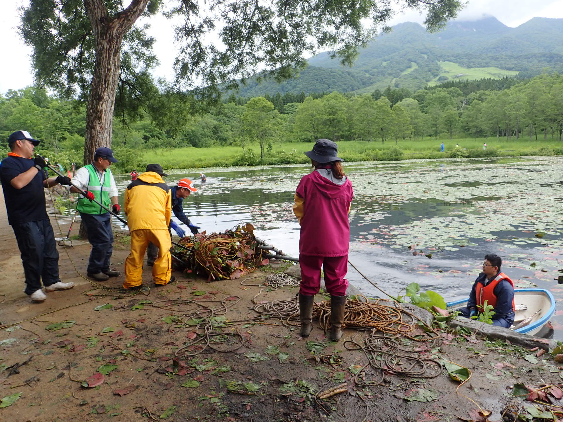 2018年07月02日観光客の方にいもり池に映る「逆さ妙高」を楽しんでもらおうと、夏と秋に実施しているいもり池スイレン除去。今年も夏の観光シーズンに先駆け、6月26日から28日にかけての3日間、いもり池のスイレン除去作業を行いました。当日は妙高市職員をはじめ、地元の池の平温泉区の住民など約30名が参加し、水面に浮かぶスイレンの茎や葉を除去していきます。除去の方法はこのような流れ↓↓↓