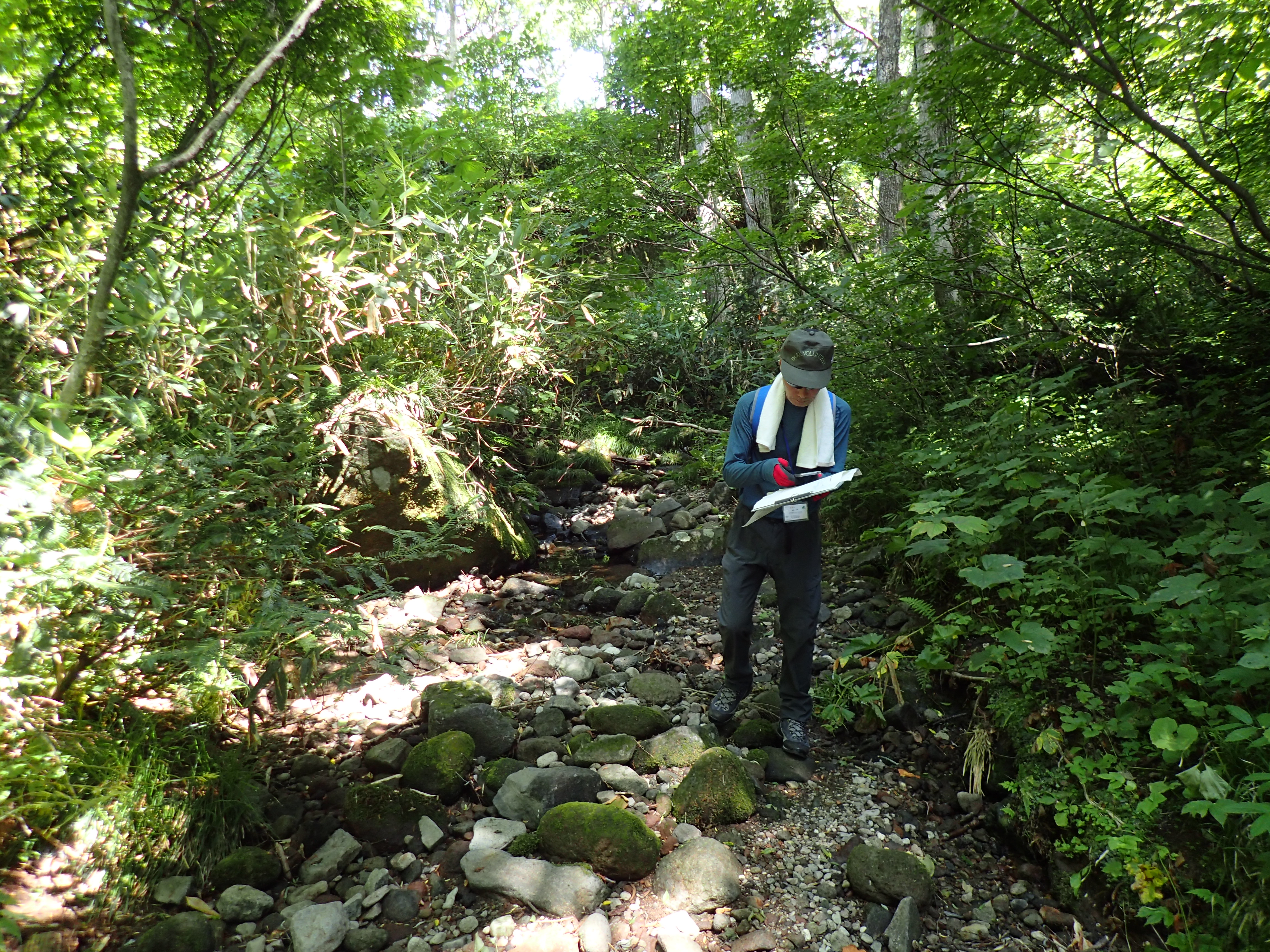 沢沿いは種が流れ、広がりやすいポイントなので念入りに確認。