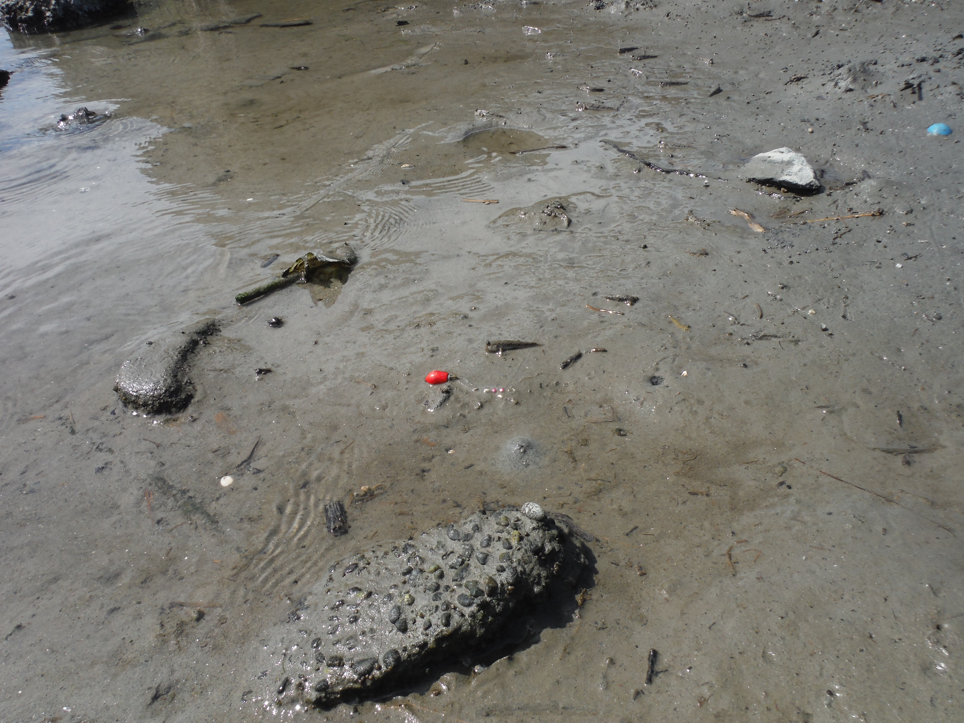 その様子を見ていると、小さなトビハゼたちの周りの岩や砂に絡まっている釣り糸がとても気になってしまい、カメラを向けて観察していました。