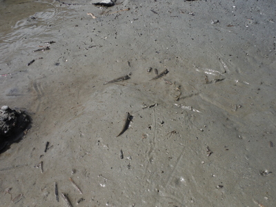 <陸に向かってジャンプするトビハゼたち>