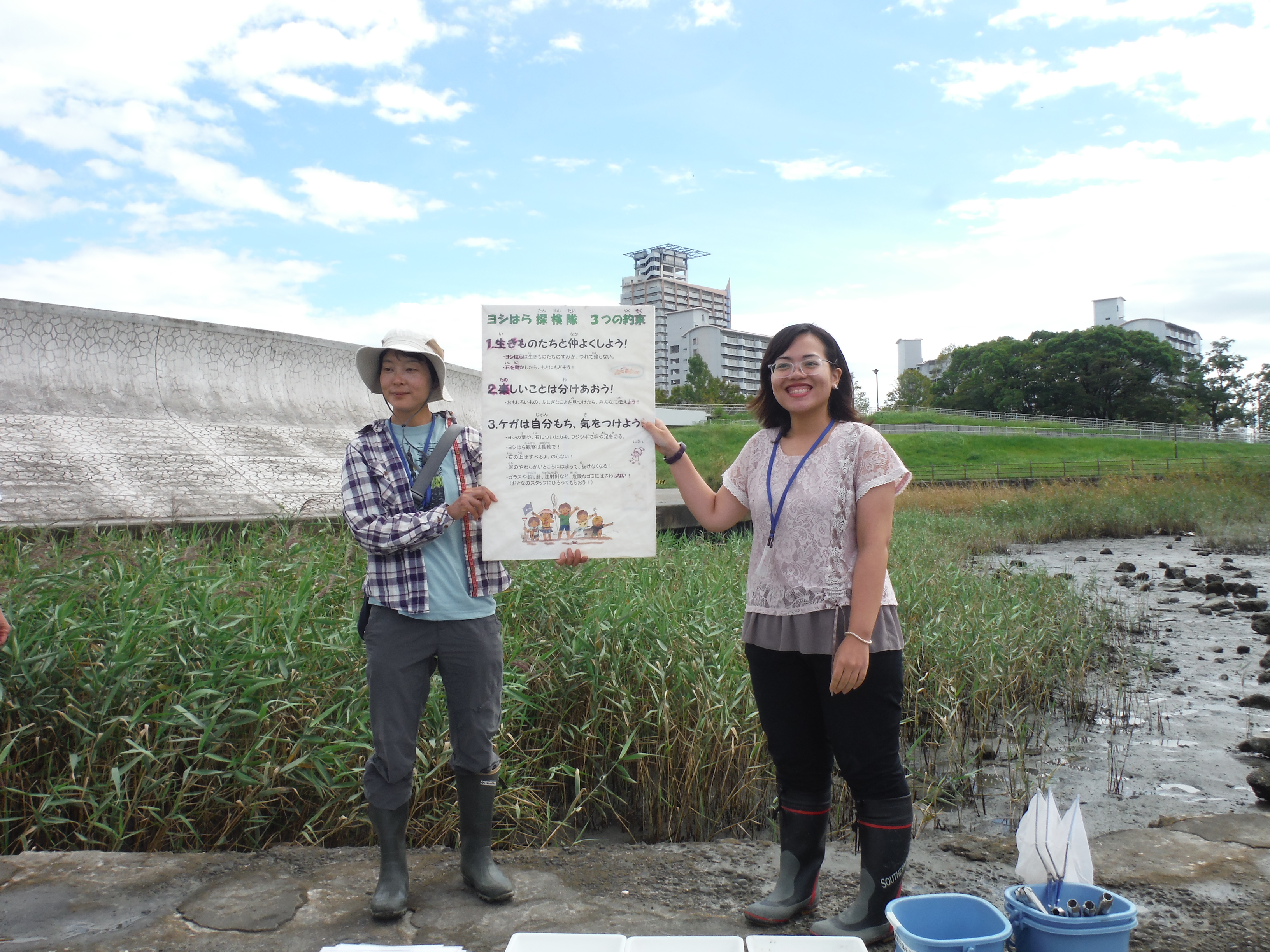 <ヨシ原の干潟に入る前の3つの約束です。>