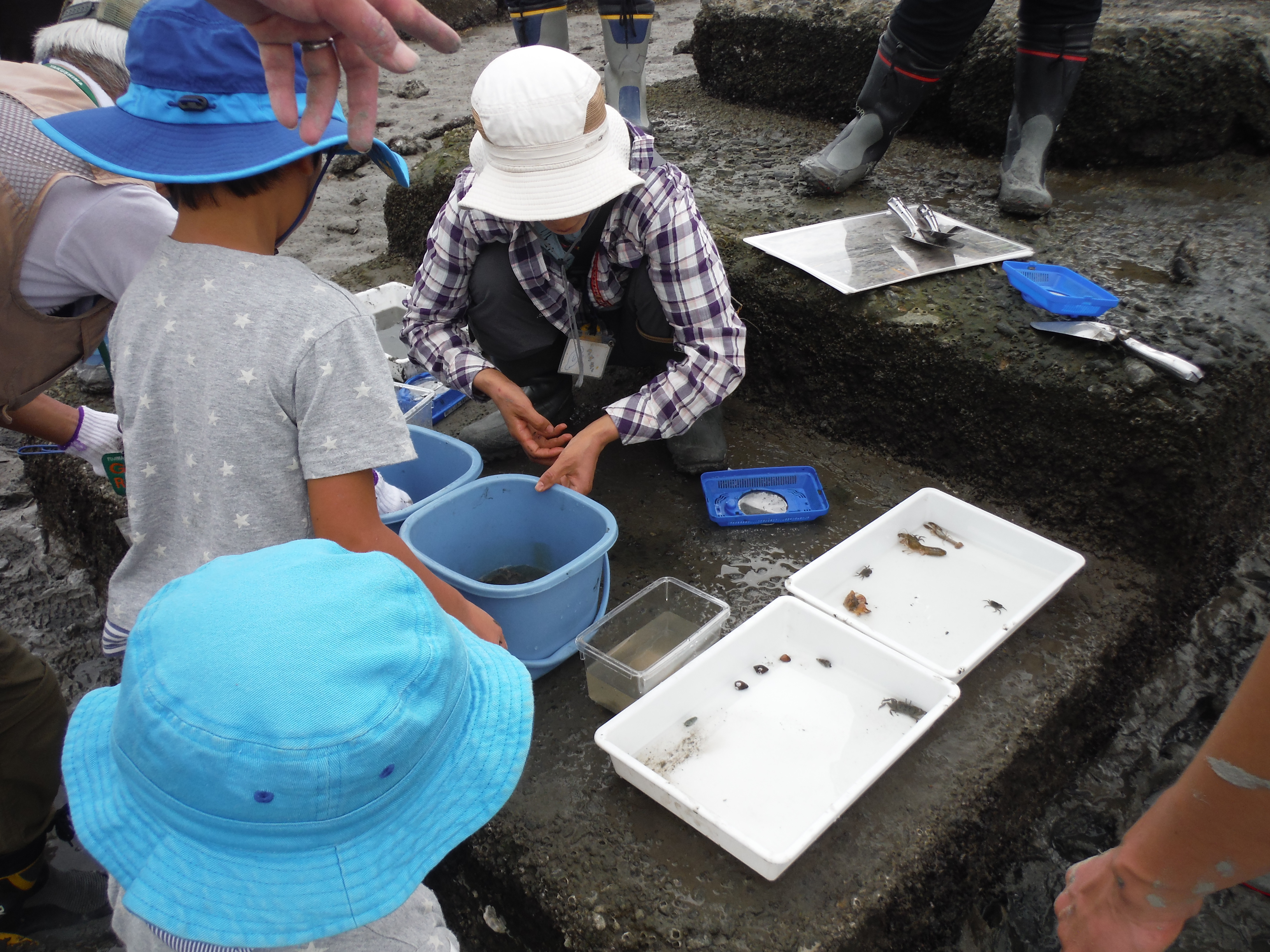 その後、どんな生き物が捕れたのか、みんなで観察します。