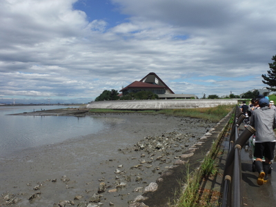 藤前干潟を眺めながら、歩いて15分ほどで、ヨシ原に到着!