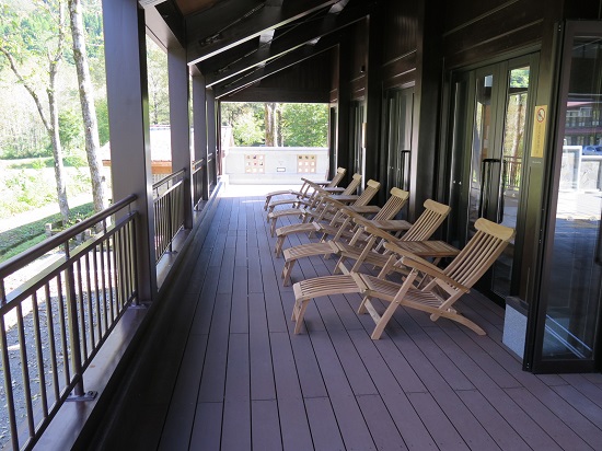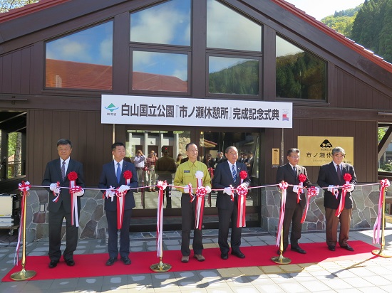 こんな秋が深まりつつある10月3連休の最終日、8日に市ノ瀬休憩所の完成記念式典が行われました。式典が執り行われた3連休は、台風25号が接近し、開催が危ぶまれましたが、フタを開ければ快晴のとても気持ちの良い1日になりました♪  (市ノ瀬休憩所完成記念式典の様子。ガラスに青空が映っています!) そしてついに、市ノ瀬休憩所が皆さまにご利用いただけるようになりました♪ この市ノ瀬休憩所、9月21日の鈴木アクティブ・レンジャーの日記にもありますが、本当に居心地がいいのです。 私のイチオシは、何と言ってもテラスのデッキチェアです! ここに座って市ノ瀬の木々を眺めていると時間を忘れて過ごせそうなんです。完成記念式典当日の朝、試しに座ってみたんですが、立ち上がるのが嫌になるくらい、居心地がよかったですよ!  (テラスに設置されるデッキチェア)