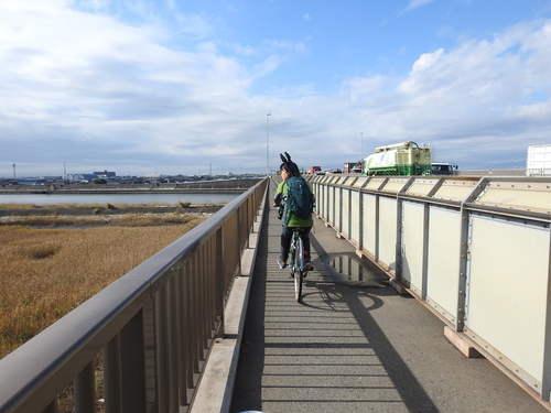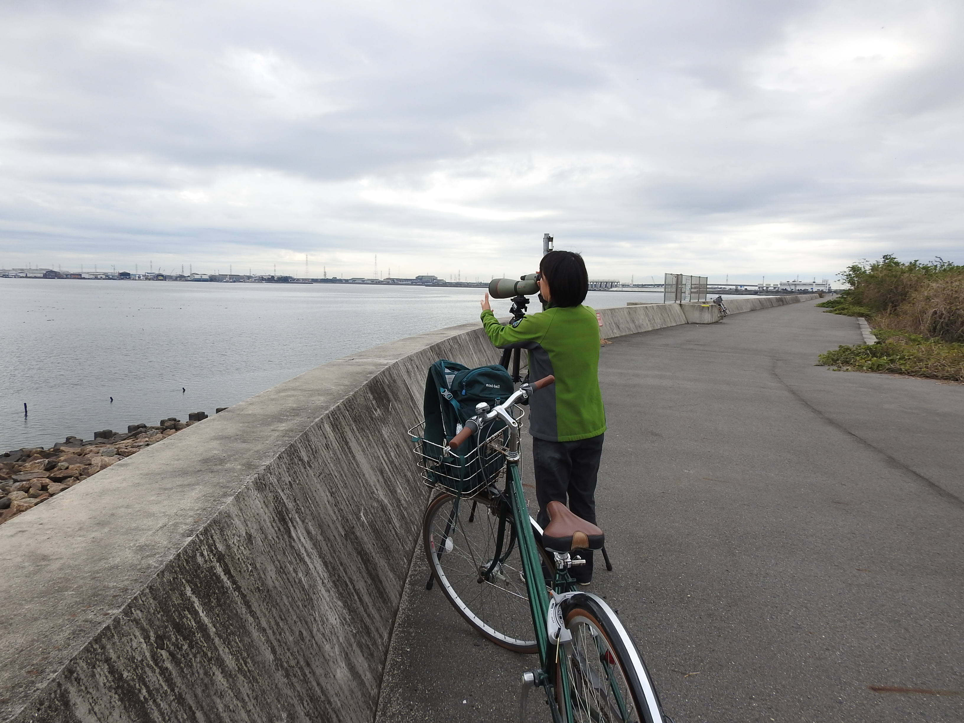 さて、普段は鳥獣保護区内の巡視に車を使用することが多いのですが、今日は、稲永ビジターセンターから藤前活動センターまで、往復、8キロ弱を西部ARと初めて自転車で出かけることにしました。