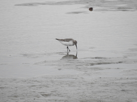 私たちの目の前に、ハマシギの群れが飛来してきました。飛来の様子はカメラに収めることが出来ませんでしたが、近くで見ることが出来たので、1羽1羽の特徴がよく確認出来ました。