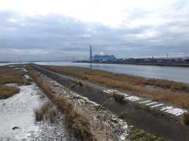 <これは車では撮影出来ない橋の上からの導流堤とヨシ原の景色です>