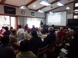 また、反省会に合わせて講演会を行いました。講師に信州大学理学部の東城幸治教授(信州大学学術研究院理学系・生物学領域)をお招きしました。「生物多様性の世界的ホットスポットとしての信州」という演題で、研究事例を挙げながら地史的な観点や遺伝分類学の観点から、日本の生物多様性についてお話してくださいました。