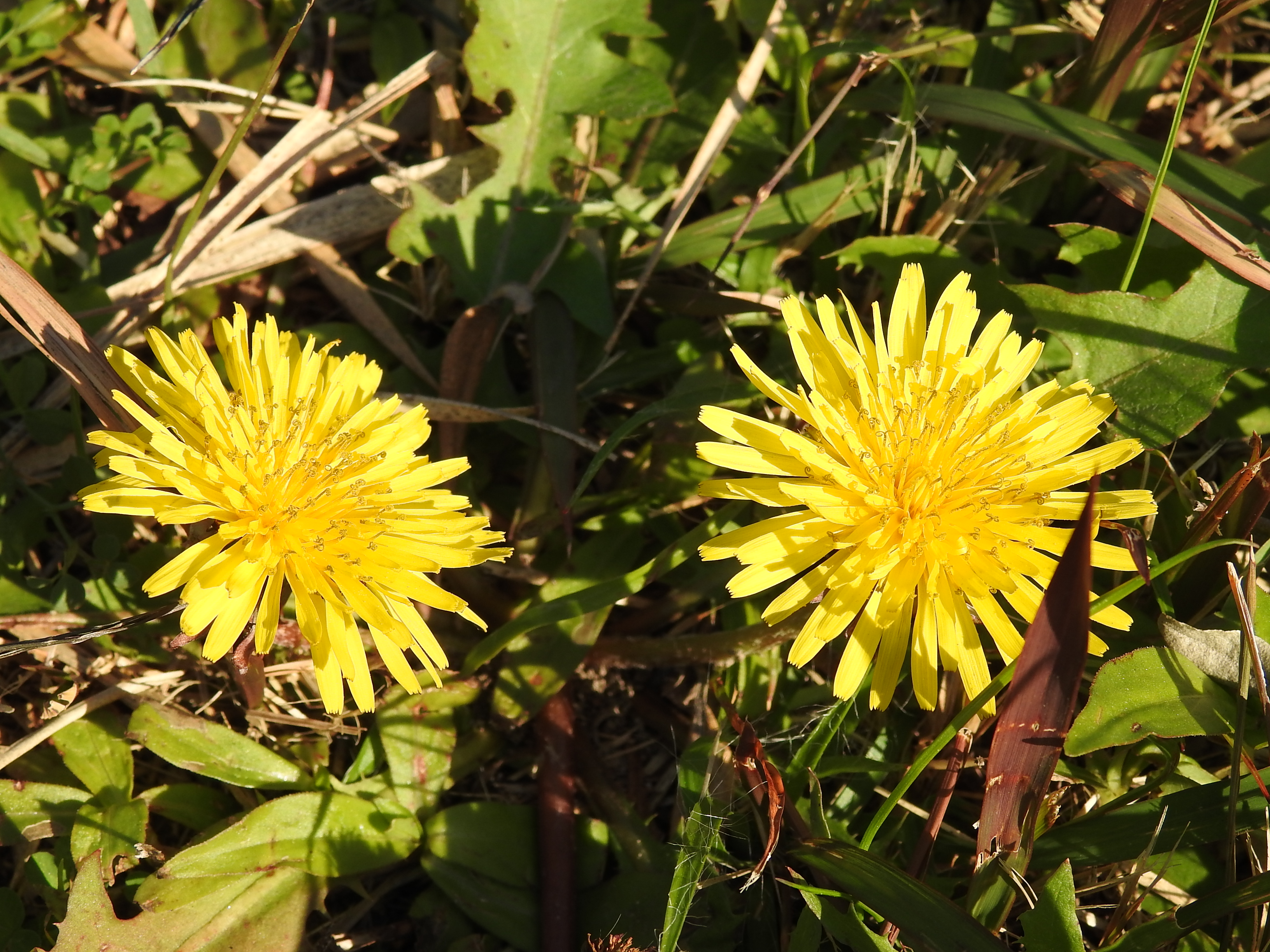 穏やかな日差しにタンポポもタンポポの綿毛も日差しの方を向いて咲いています。