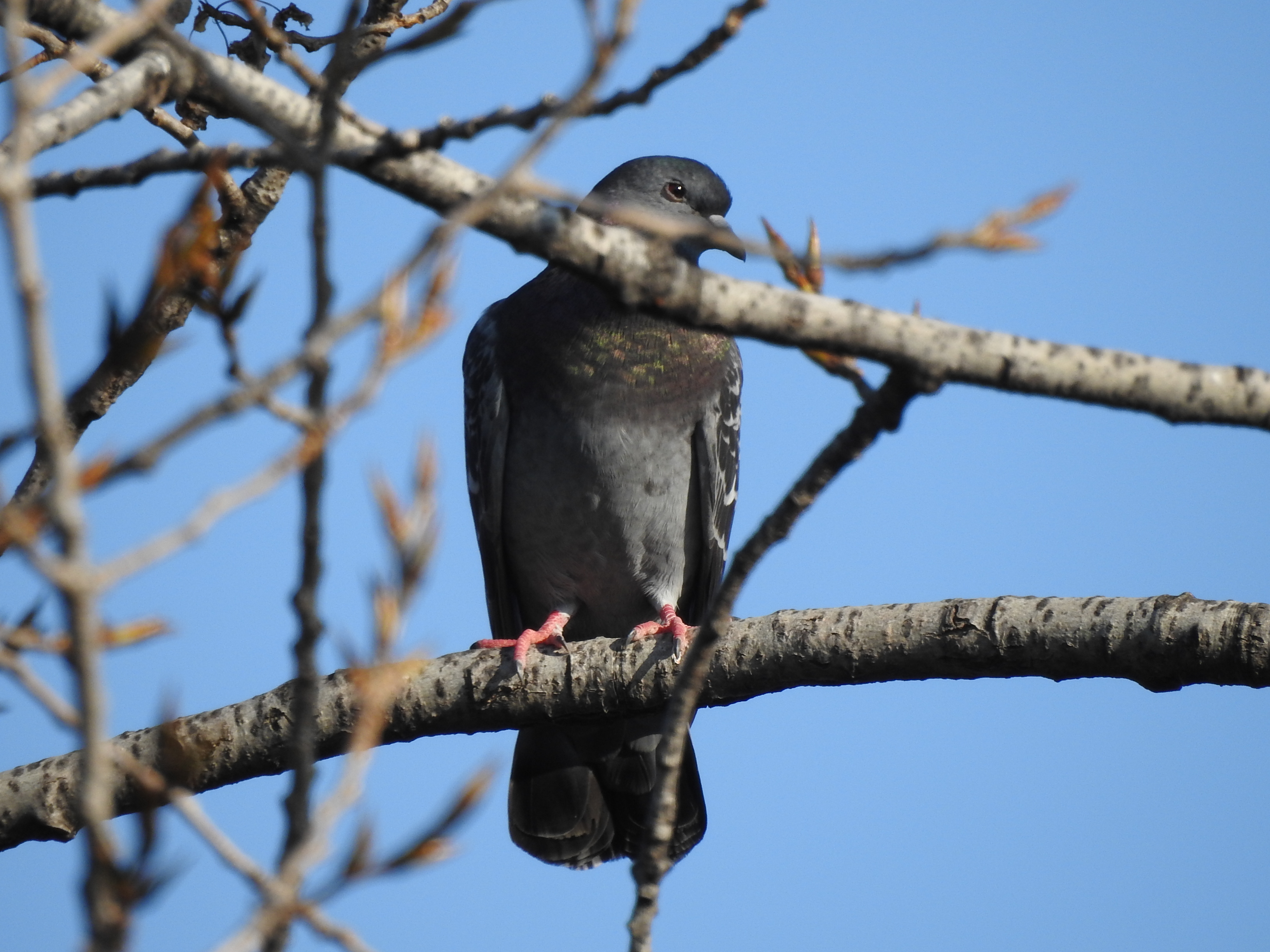 そして、次にドバトが。さすがにカワラヒワは飛び去ってしまいましたが、しばらくするとまた戻ってきました。とても目立つ場所ですがお気に入りでしょうか?