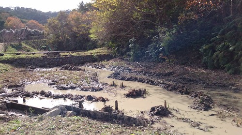 そして12月5日は、池の植物の根を取り除き、池に溝を掘る作業を行い、現在はこのような感じに。