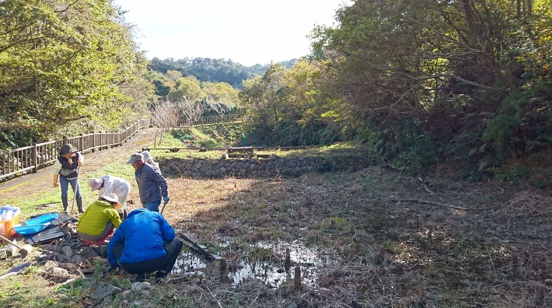 2018年12月11日伊勢志摩国立公園パークボランティア連絡会では、アカガエル生息環境整備の活動を行っています。