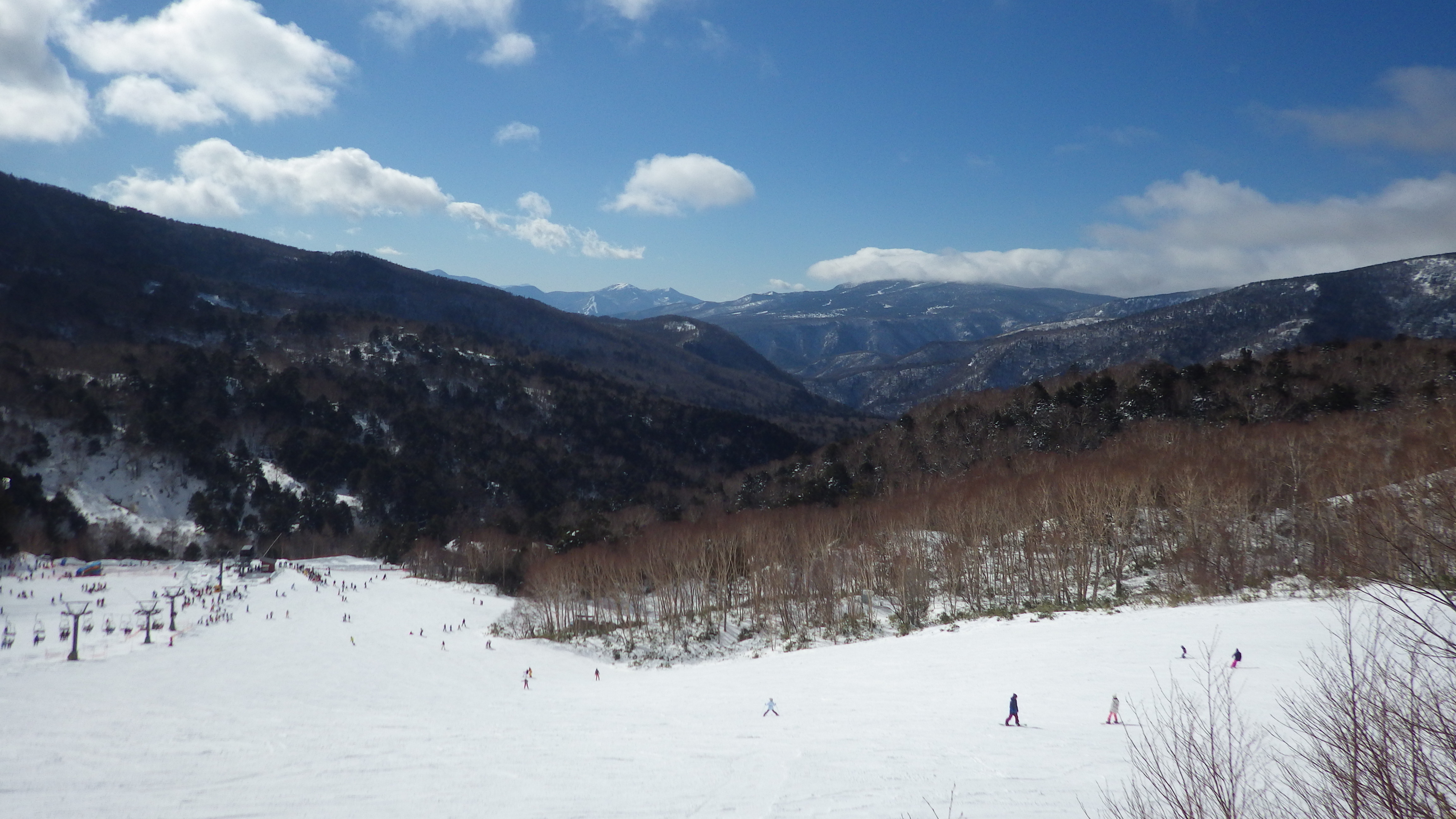 コース途中からはスキー場の奥に遠くの山々が一望でき、