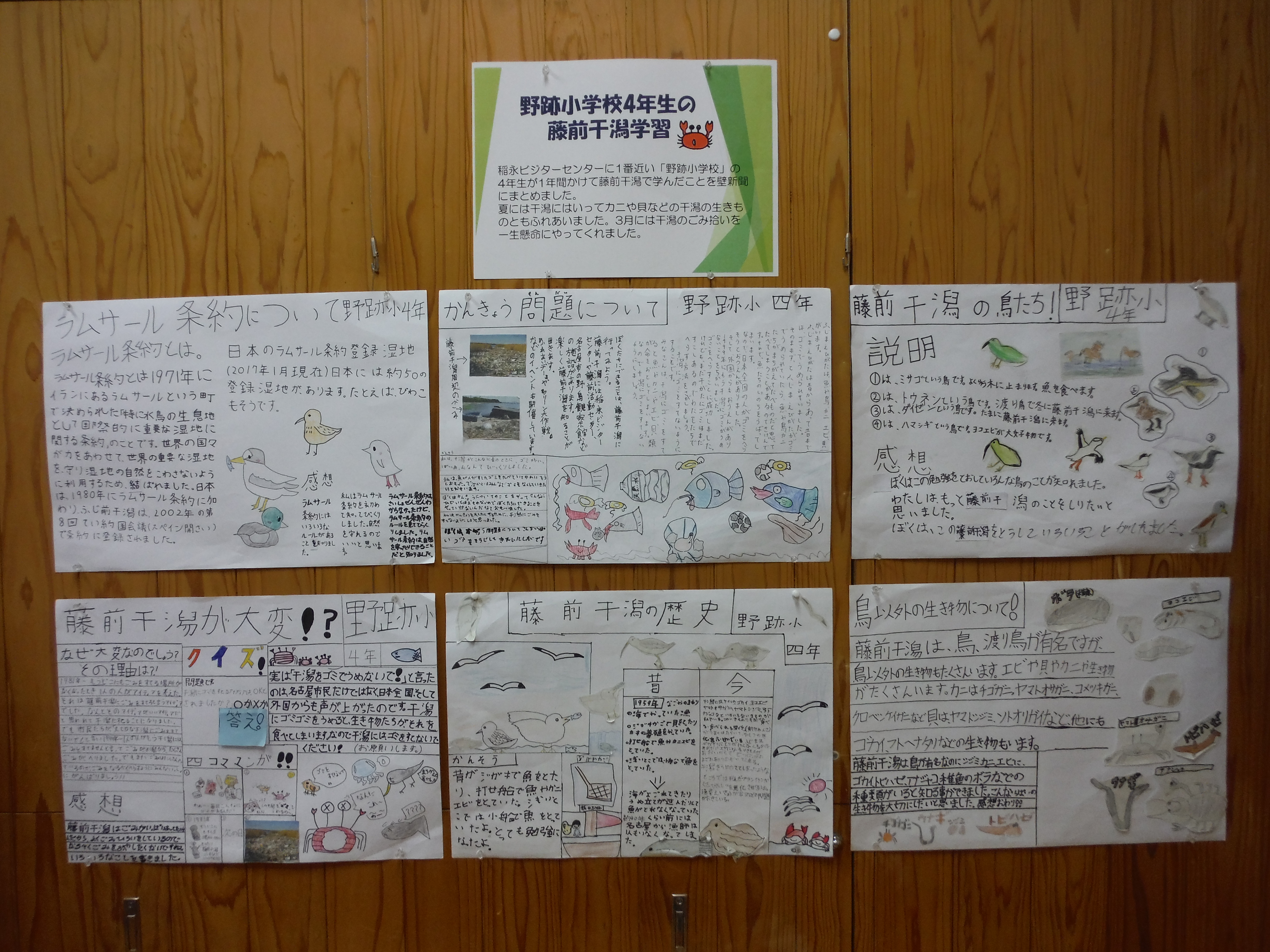 先日、地元の野跡小学校の4年生が1年間を通して藤前干潟の学習をし、学習の最後のまとめとして、稲永ビジターセンターで清掃活動を実施しました。