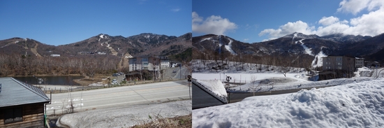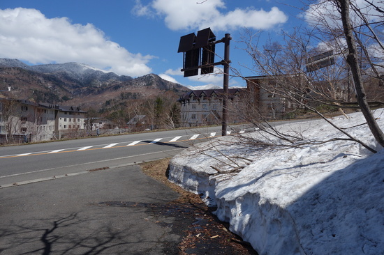 ・除雪でできた道路脇の雪の山や、斜面のスキーコースの雪もほとんど解けました。