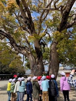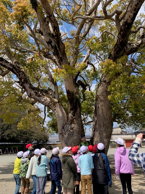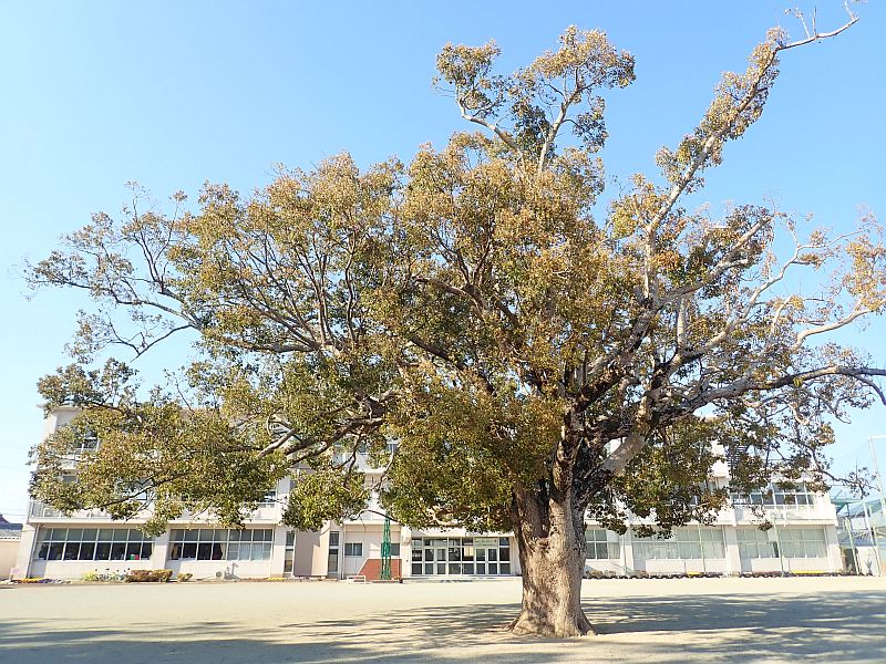 この学校の校庭にある大きなクスノキは、地域の自慢、学校のシンボルとなっています。