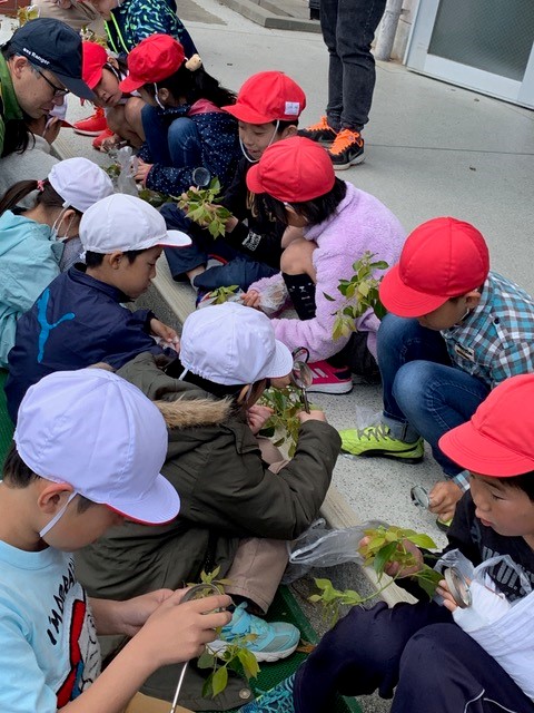 虫眼鏡などを使って特徴を観察しました。