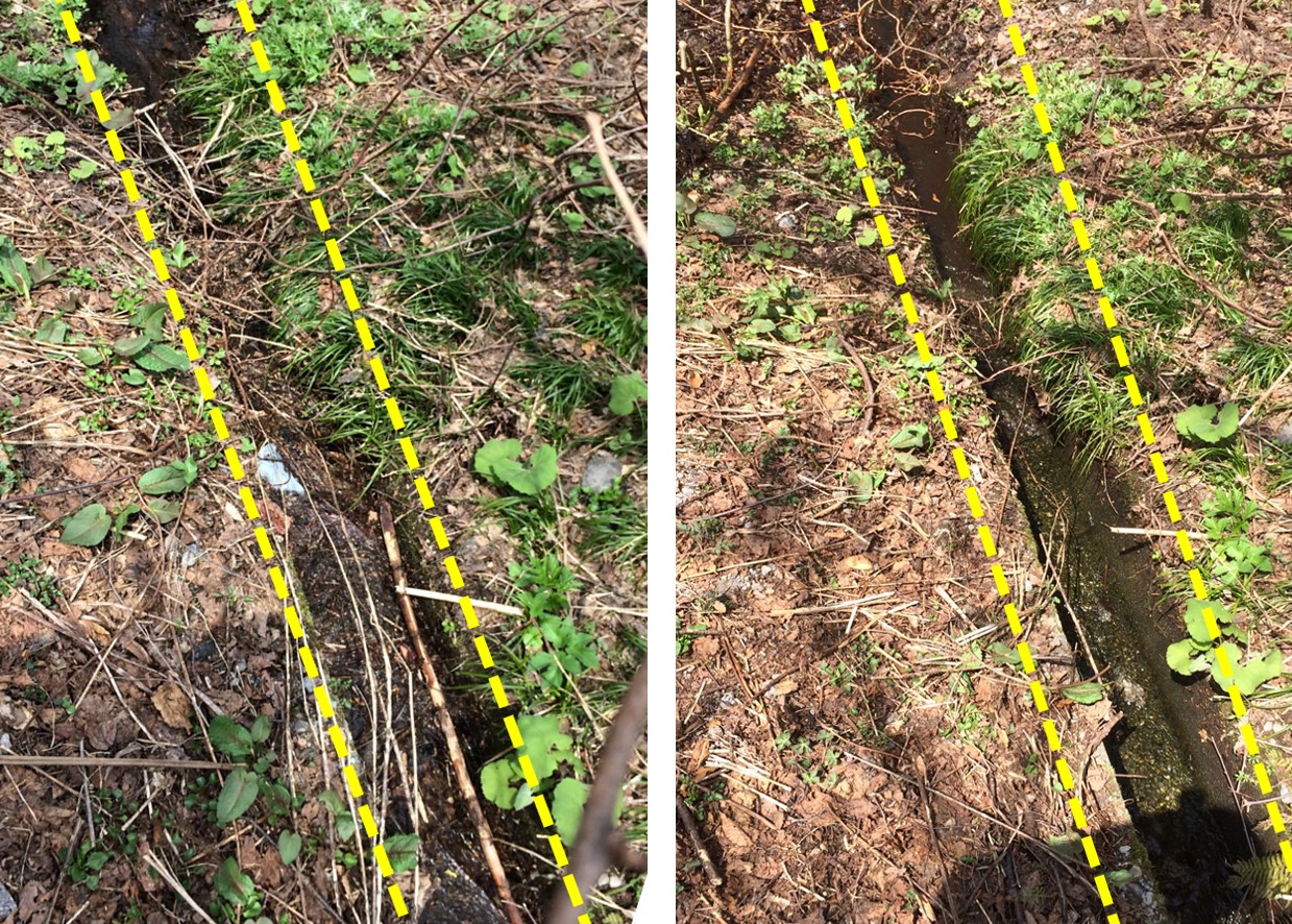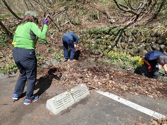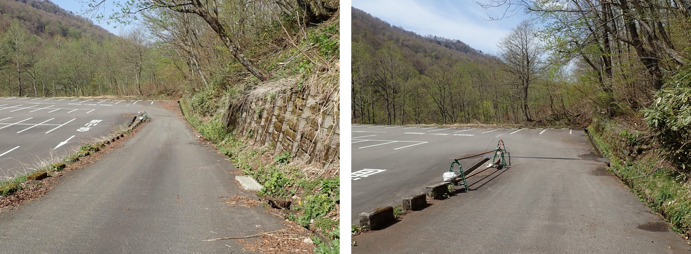 (大量の落ち葉も手際よく集めていきます) 皆さん、毎年のことながら本当に手際がよく、あっという間にきれいになりました!  (駐車場清掃Before左、After右) さらに今年は駐車場から別当出合休憩舎間の園路周辺のゴミ拾いにも力を入れました。その結果、これまで気付かなかったゴミがいろいろ発掘されました。 傘、年代物の空き缶等のほか、風か雪崩か...どこかの資材が飛ばされてきたのかトタン板など大物のゴミも落ち葉の下から回収されました。