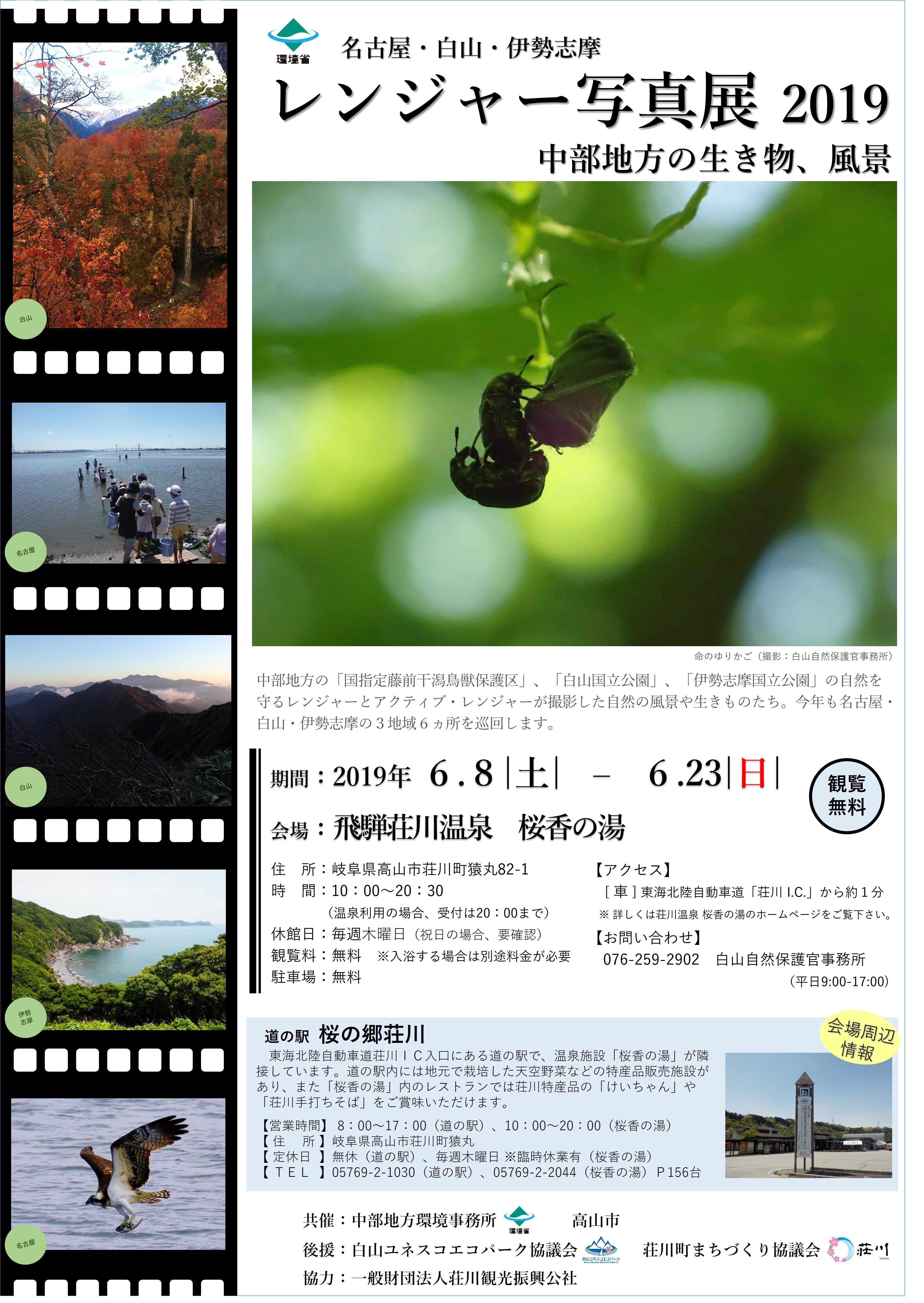 6月8日(土)から6月23日(日)の間、岐阜県高山市荘川町にある「飛騨荘川温泉桜香の湯」で、レンジャー写真展が開催されます♪