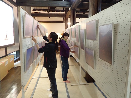 (展示作業中!) 高山市荘川支所地域振興課の方にもお手伝いをいただき、無事展示ができています♪
