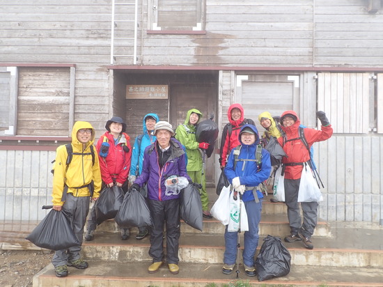 みなさん、こんにちは。 いよいよ来週7月1日に白山夏山開きです! 今シーズンはどんな出会いがあるのでしょうか?今から楽しみです♪ さて、先日6月9日(日)、パークボランティアの皆さんと2回目の開山準備として、甚之助避難小屋の清掃と砂防新道の一方通行看板の設置に行ってきました! この日はあいにくの雨模様。