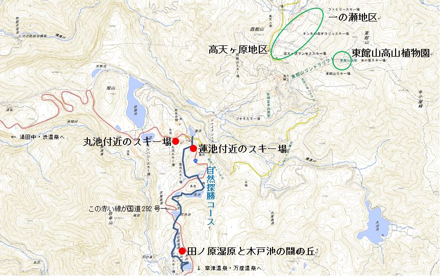 上の場所から国道292号をさらに草津方面へ進みます。田ノ原湿原側にも、木戸池側にも駐車スペースがあり、ともに15分ほど歩きます。