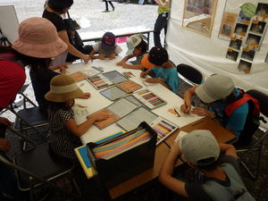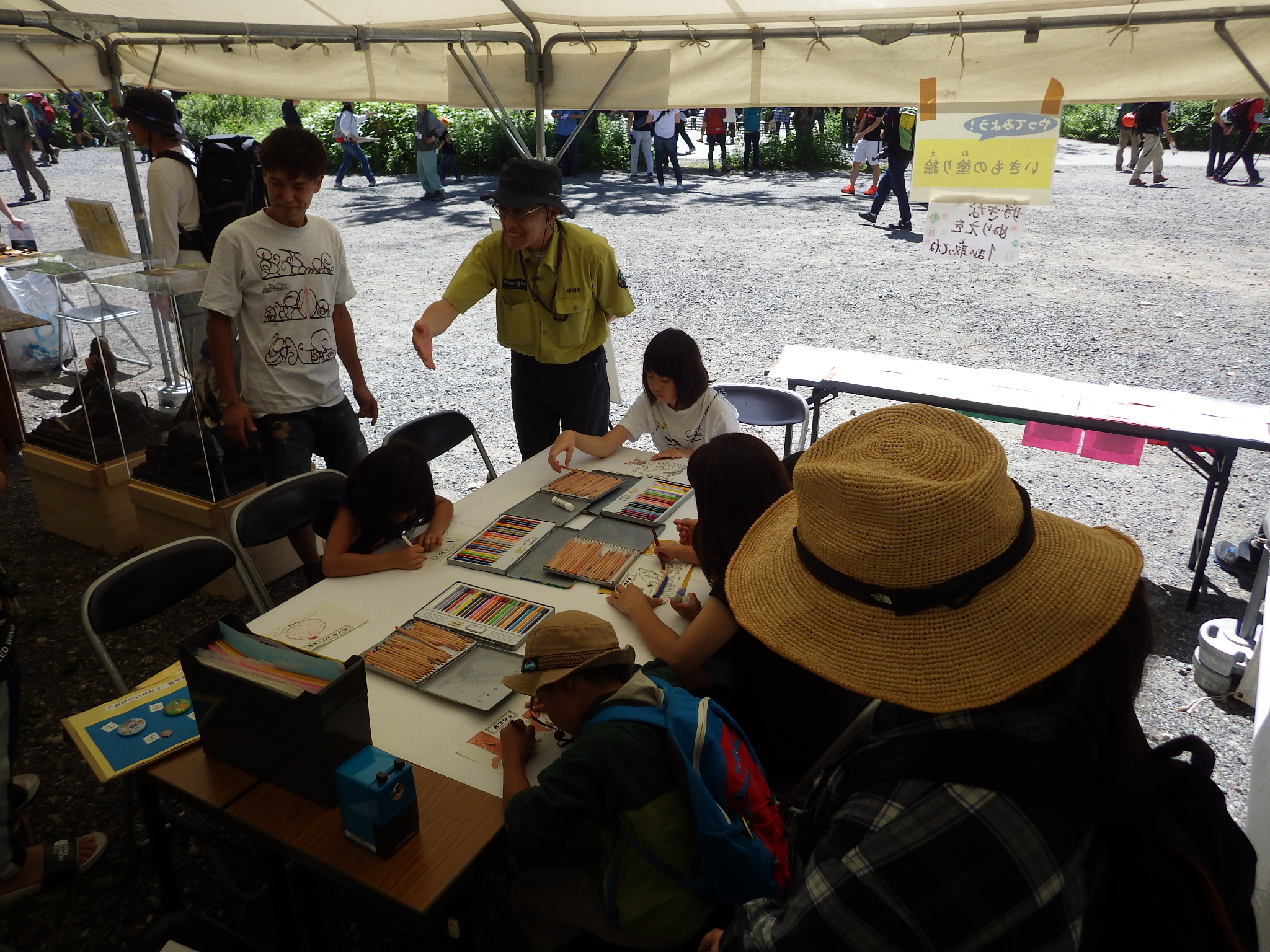 環境省ブースでは国立公園に関する展示とぬりえワークショップを行いました。みんな集中して『国立公園のどうぶつ』ぬりえに挑戦!ぬりえが完成したらおみやげをもらって大喜びです。
