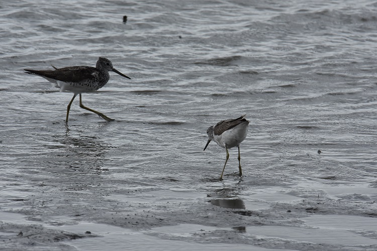 <8月から藤前干潟に現れるアオアシシギ。姿がキレイなので、好きなシギです。>