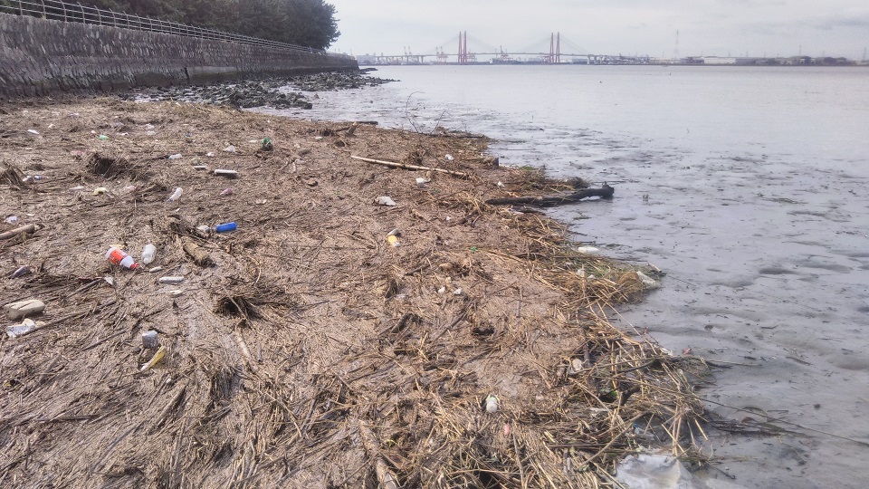 <2019年10月26日 大量に流れ着いた枯れたヨシとゴミ>