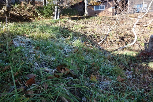 初霜はもう少し前なのだと思いますが、霜は日が当たったり気温が上がったりすると消えてしまいます。その時間帯まで残っているのは初めてでした。