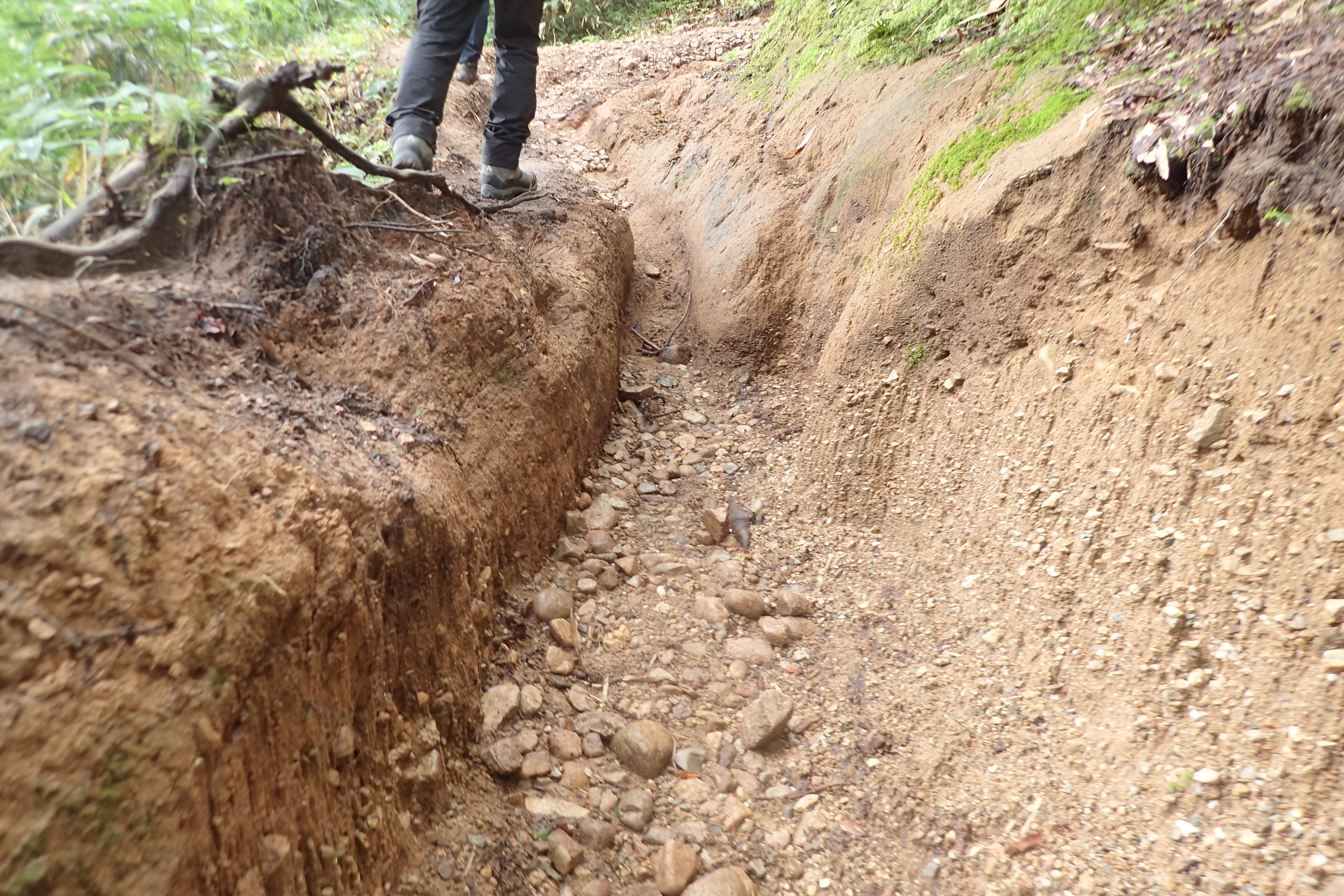 施工が不十分であれば登山道に水が流れる様子が見られるので、大雨警報が出ている日にこそ山に行くと仰っていた(普通の人はマネしないでください)のが印象的でした。