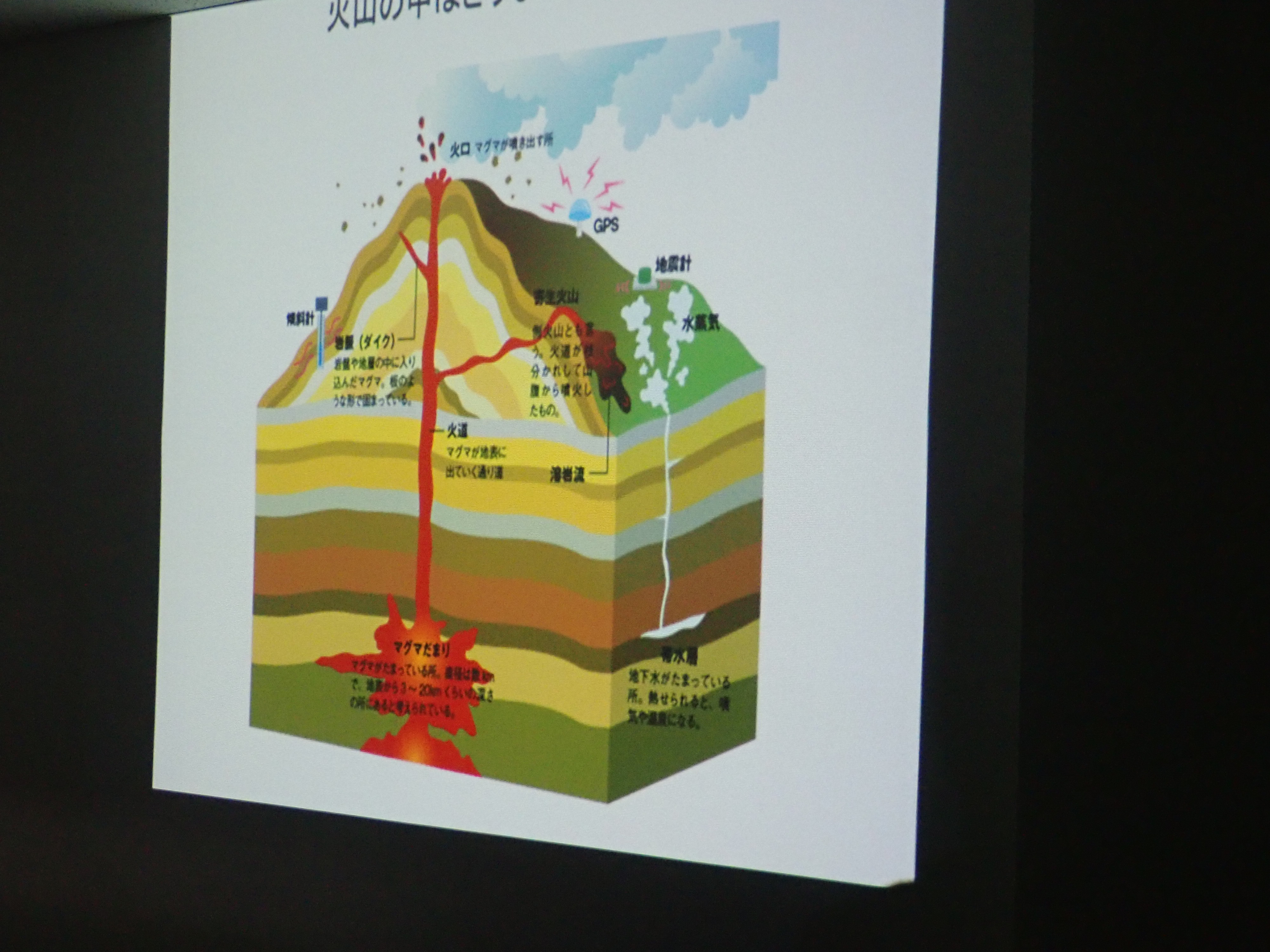下山後は再び観測所に戻り、東京大学の先生から火山に関する講義を受けた後、まとめの壁新聞作りと発表です。