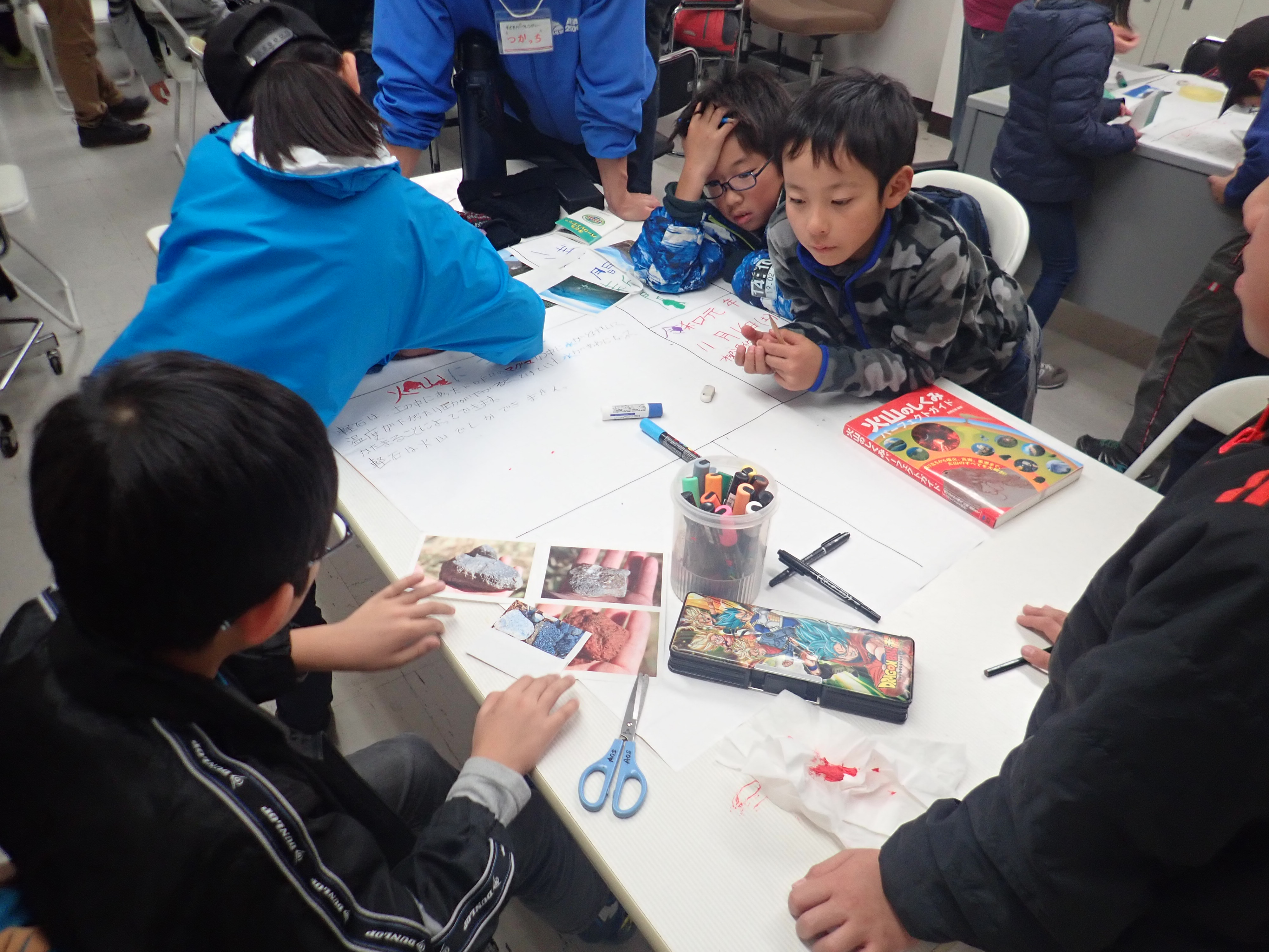 【火山に関する講義】 【班ごとに分かれて壁新聞作り】