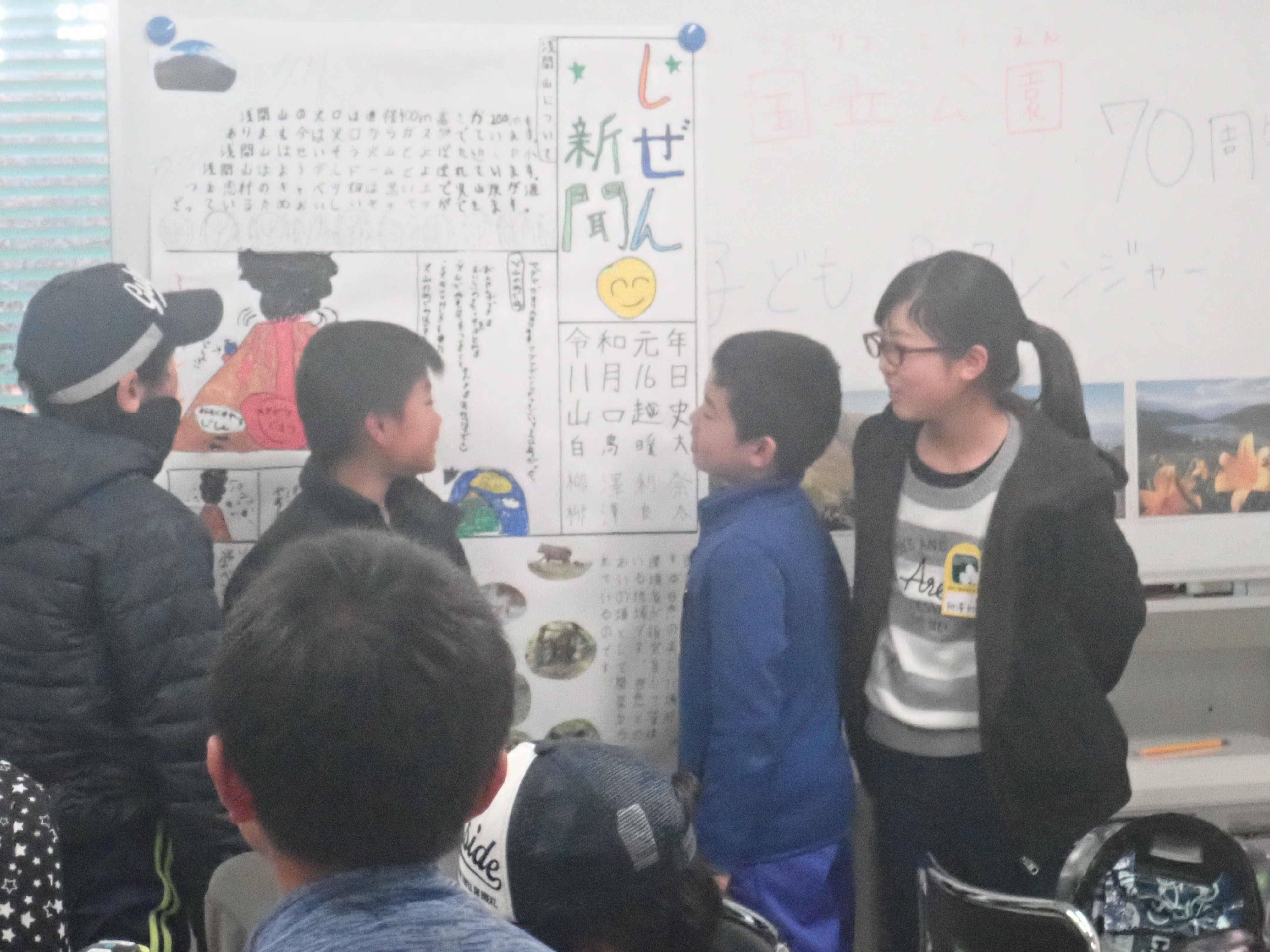 でも壁新聞には1日で学んだ火山のことや国立公園のことがしっかりとまとめられていました。