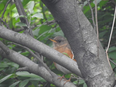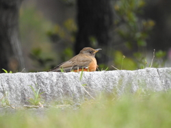 最近、事務所の近く(稲永公園)でアカハラをよく見かけます。地面に降りて何かをつついているのですが、すぐにこちらに気づいて逃げてしまいます。なので、このような写真しか撮ることが出来ませんでした。でも息をひそめてじっとしていると、「カサカサ、カサカサ」という地面や落ち葉をつつく音が聞こえてきて、とてもわくわくして楽しい気分になります!