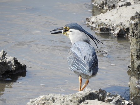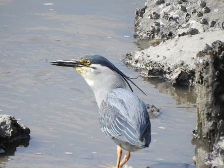 初夏になると藤前干潟に現れる鳥、ササゴイ。良く見るととてもきれいな色をしていると思いませんか。全体の特徴的なシルエットや鋭い目がいいですね~。
