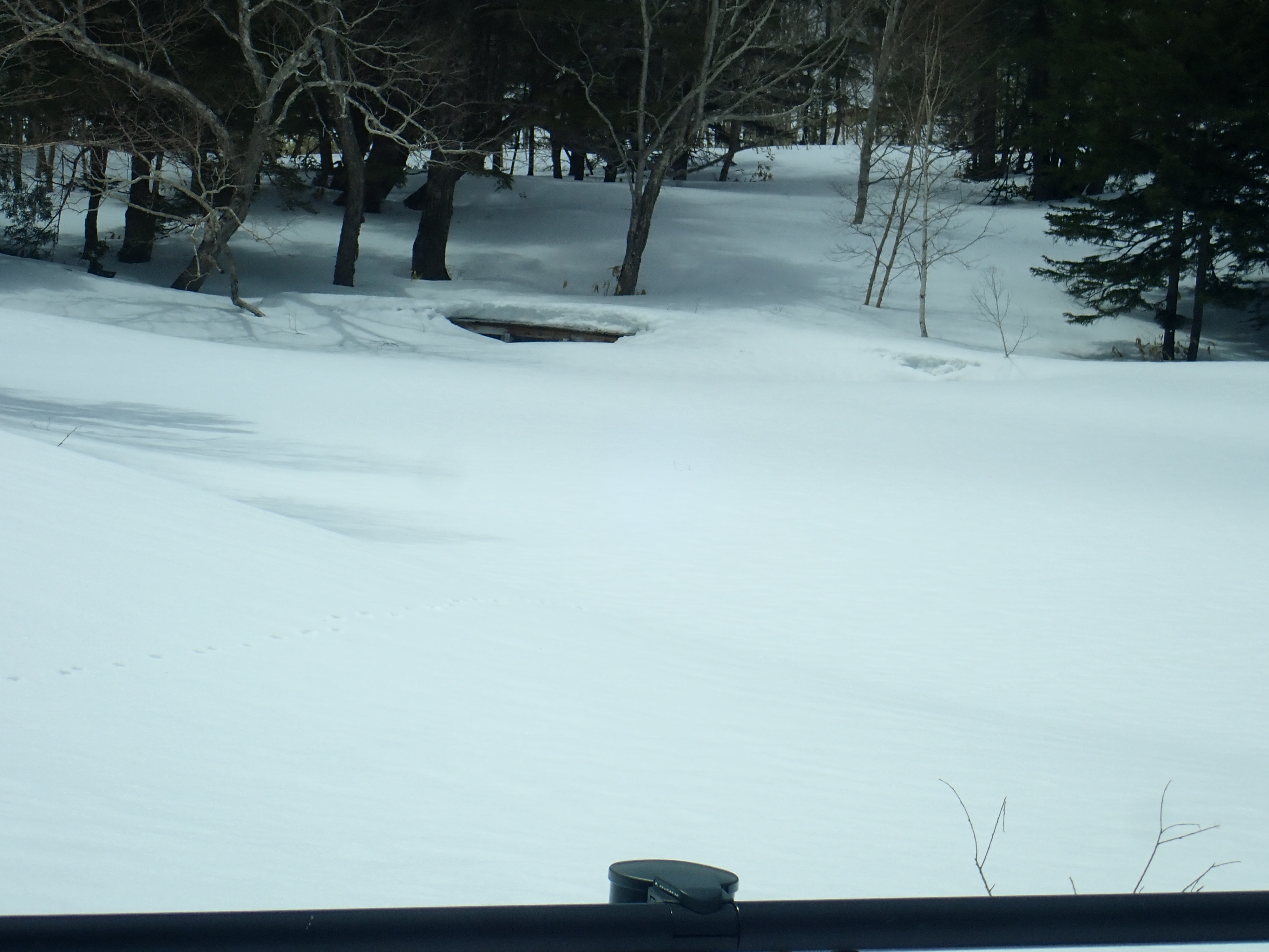 冬にたっぷり積もった雪が少なくなり解けてきています。今日は外の通路も凍結なしでした。