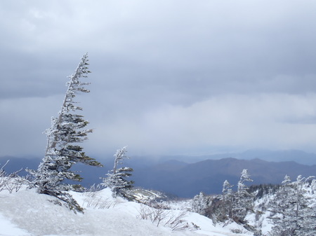 ⇑木々の枝の先には、昨日の吹雪で出来た樹氷が見られる場所も♪